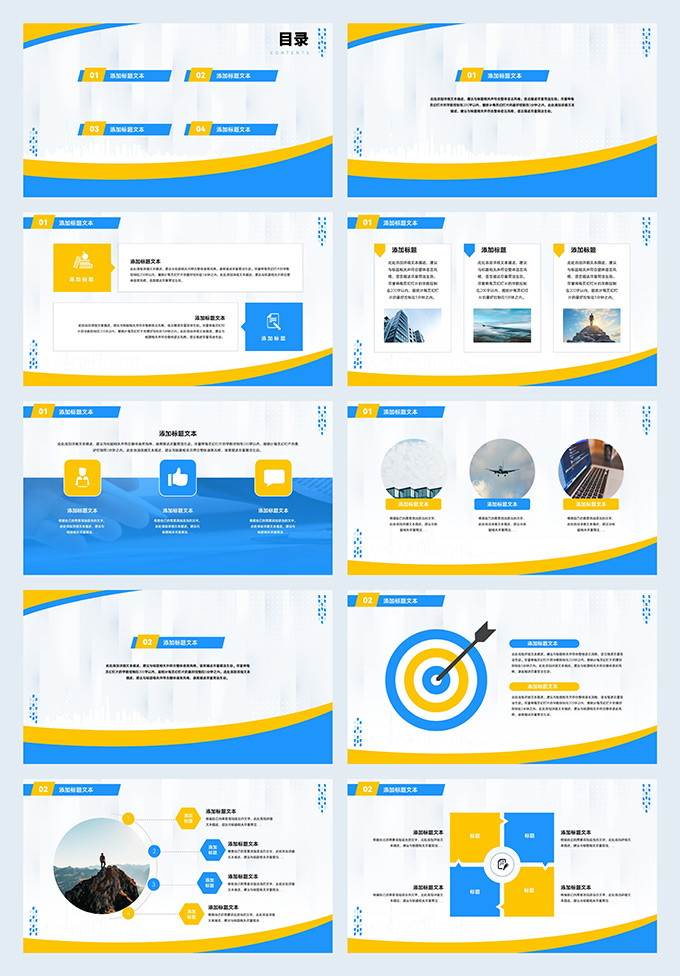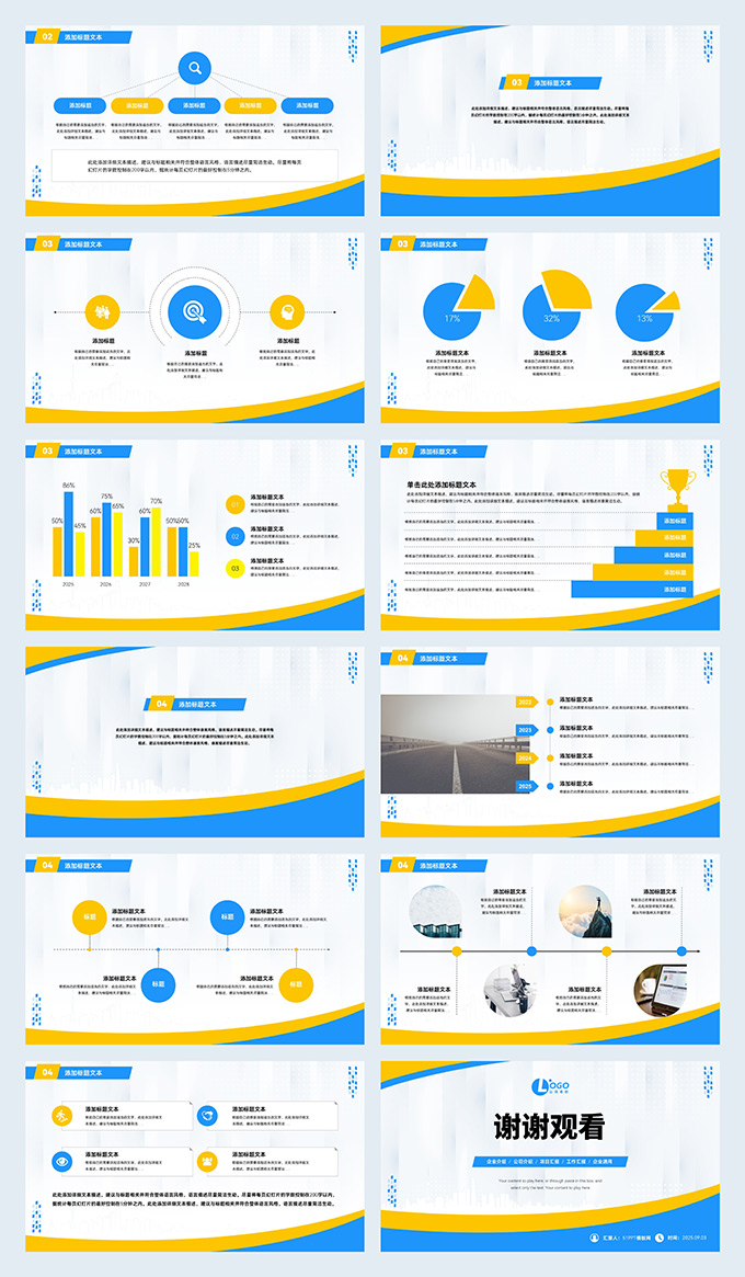 简介:蓝黄简约企业介绍项目汇报PPT模板,本模板共23P,渐变竖条质感背景,搭配弧形与平行四边形等几何创意元素,封面设计简约现代。内页采用扁平化商务版式,黄蓝配色鲜明大气,适用于企业介绍、项目汇报及计划书等多种场景。标签:企业介绍,项目汇报。