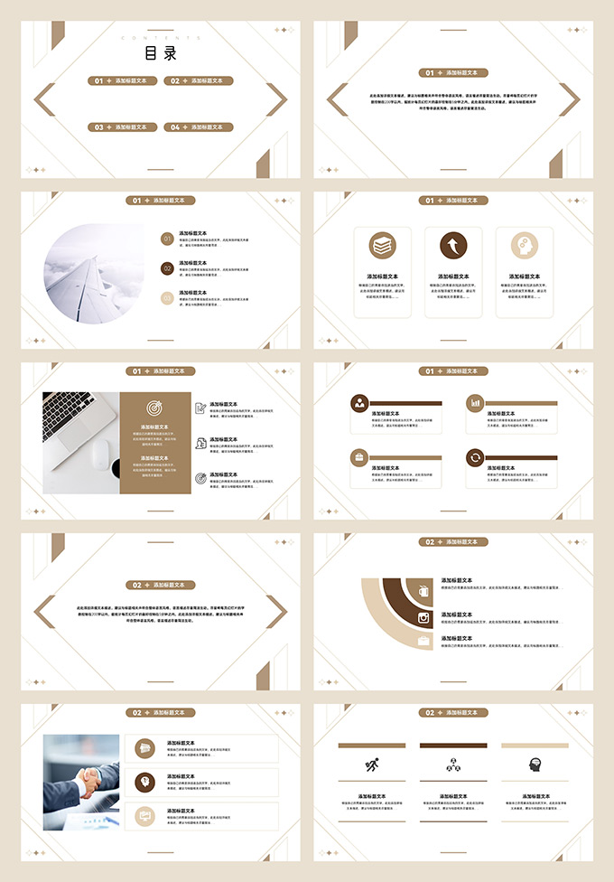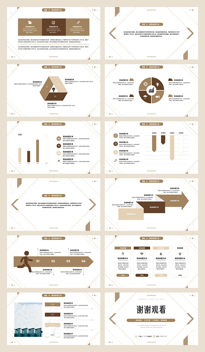 简介:极简几何风个人述职报告PPT模板,本模板共23P,纯白背景之上,几何线条勾勒出简约封面;内页采用咖褐色配色与扁平化版式,风格统一,适用于各类述职与总结汇报。标签:极简,几何风,述职报告,个人述职。